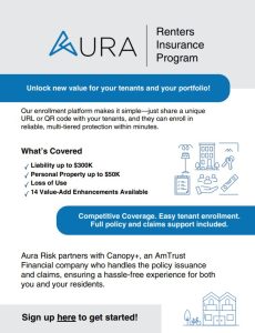 Aura Risk partners with Canopy+, an AmTrust Financial company who handles the policy issuance and claims, ensuring a hassle-free experience for both you and your residents.